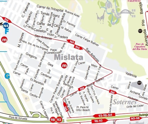 Помимо метро, в Мислату, судя по карте EMT, ходит ночной автобус N4, что для пригородов большая редкость. Я увидел еще только маршрут 63 до университетского кампуса в Бурхасоте (о чем я, кстати, не написал) и маршрут 70 до Альборайи.