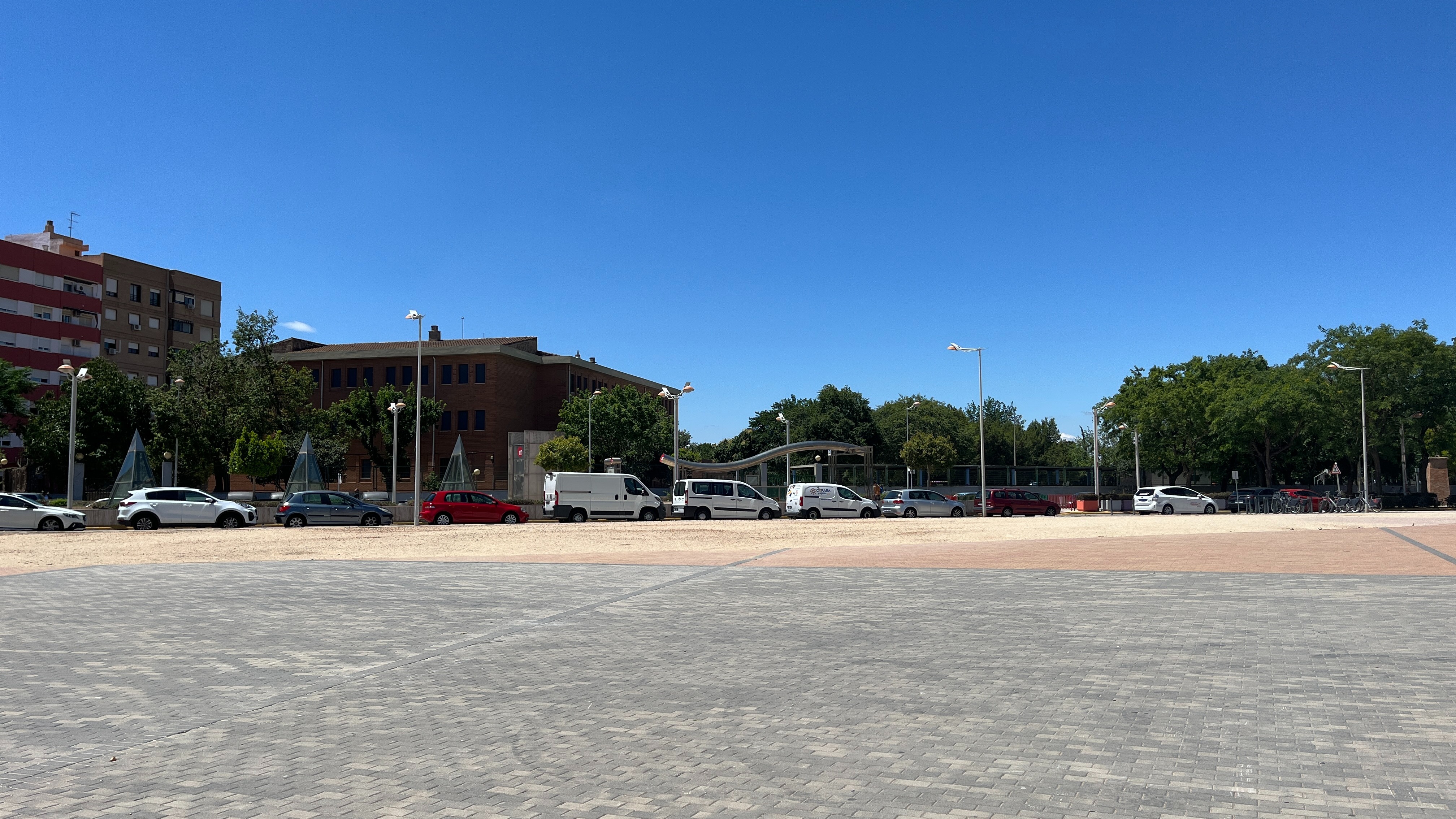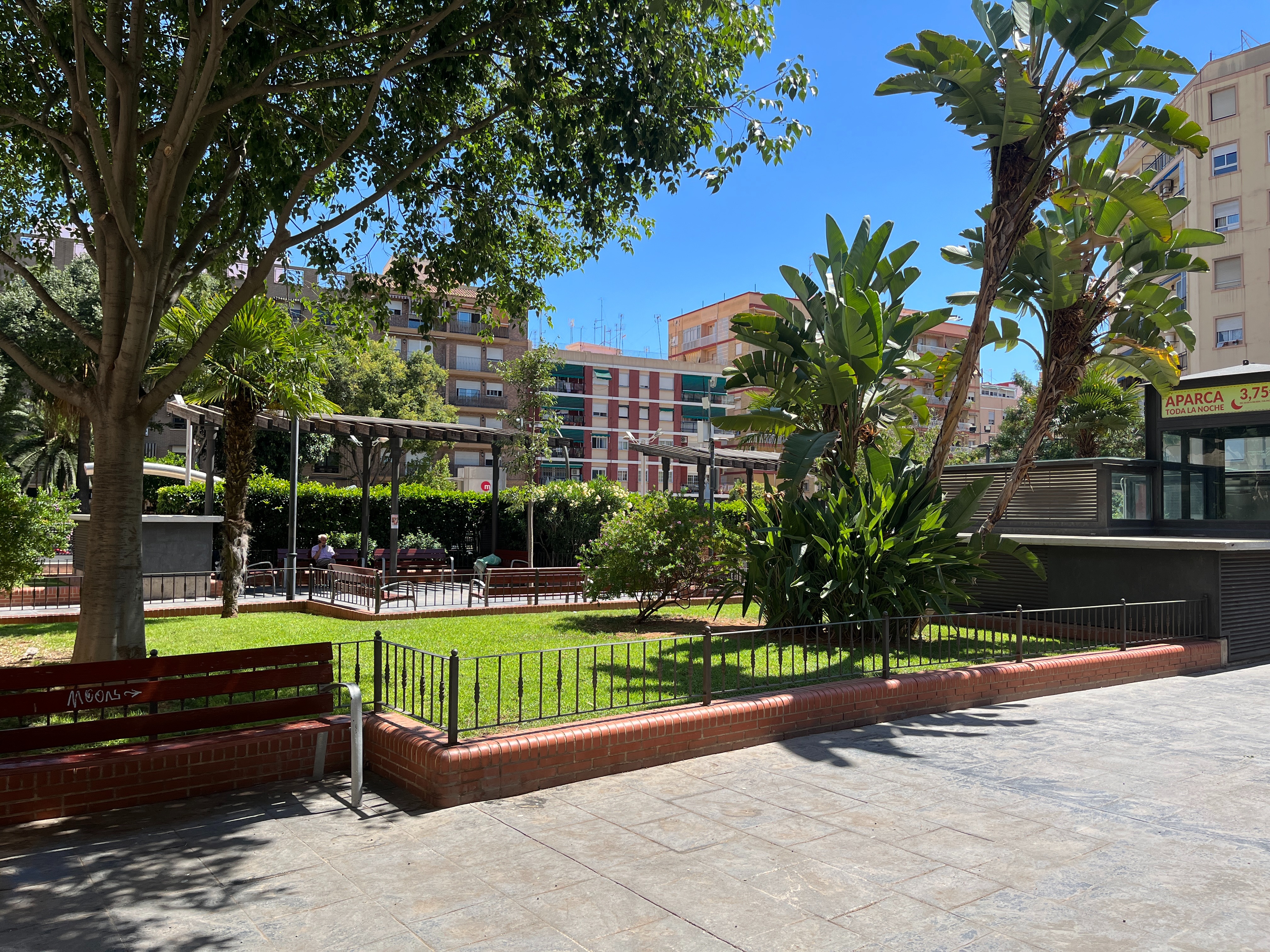 Рядом со станцией Mislata есть еще небольшой сквер, который скрывает под собой паркинг. Такие решения встречаются в Валенсии. Например, подобное благоустройство есть у станции Campanar.