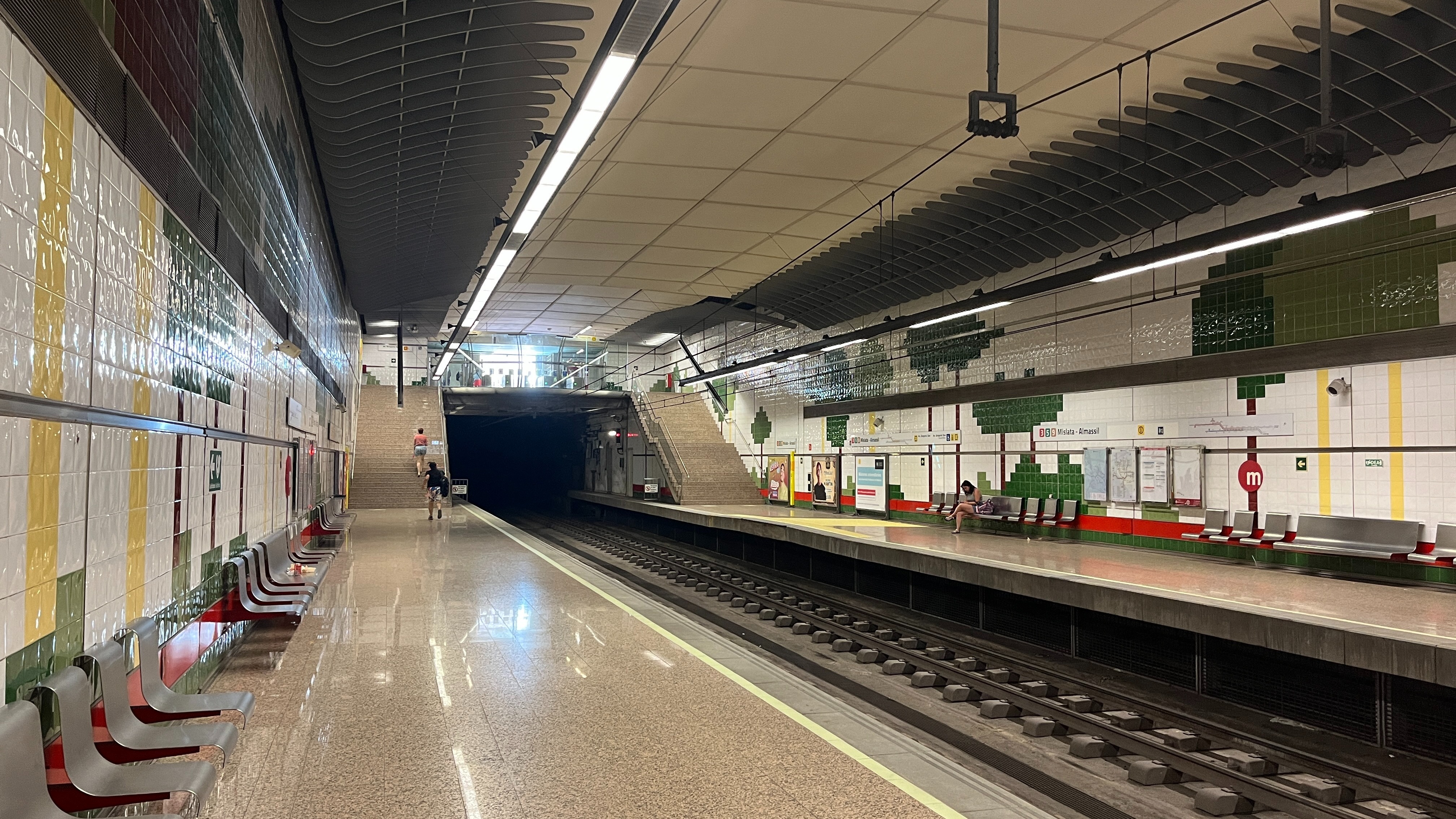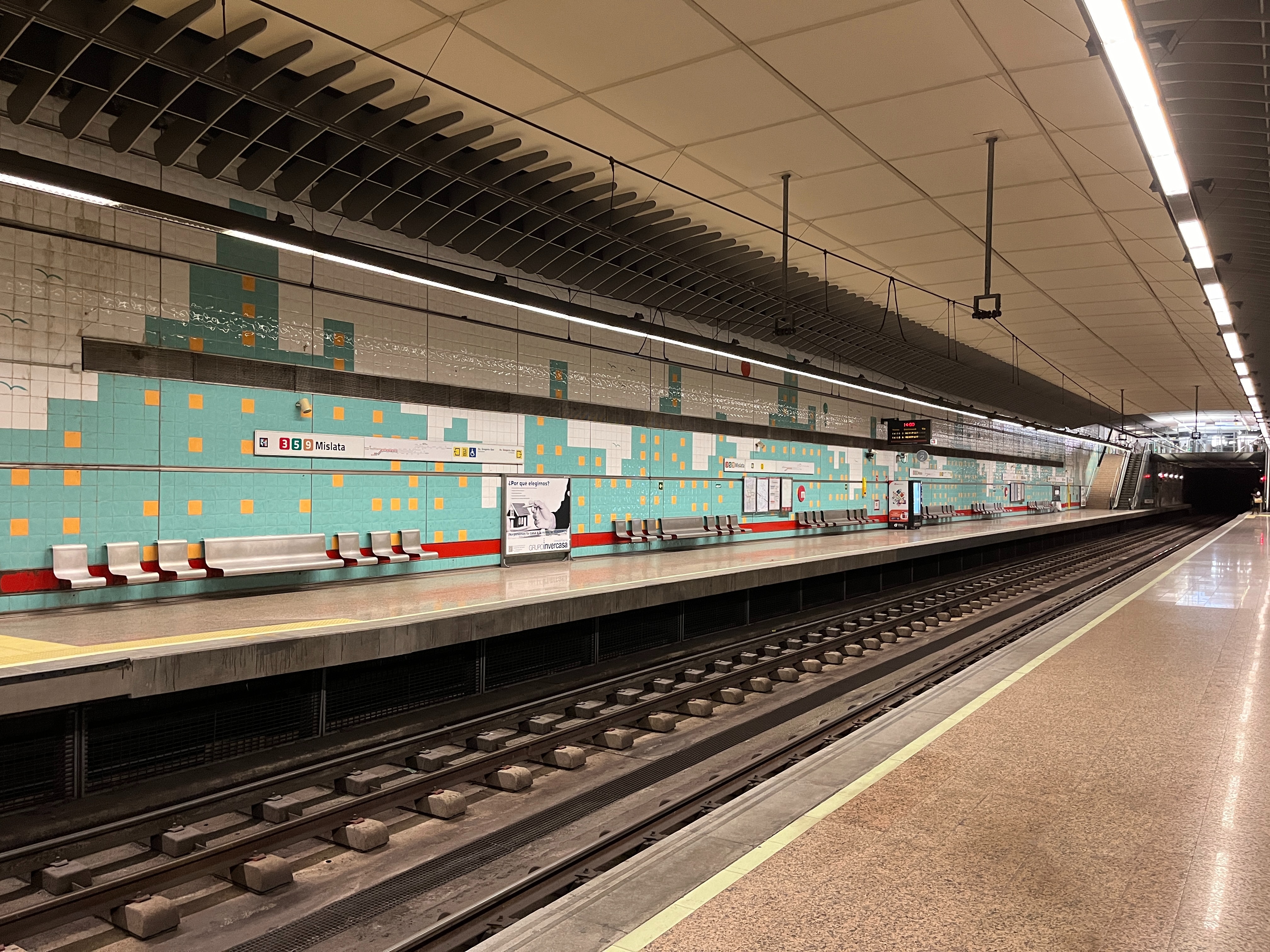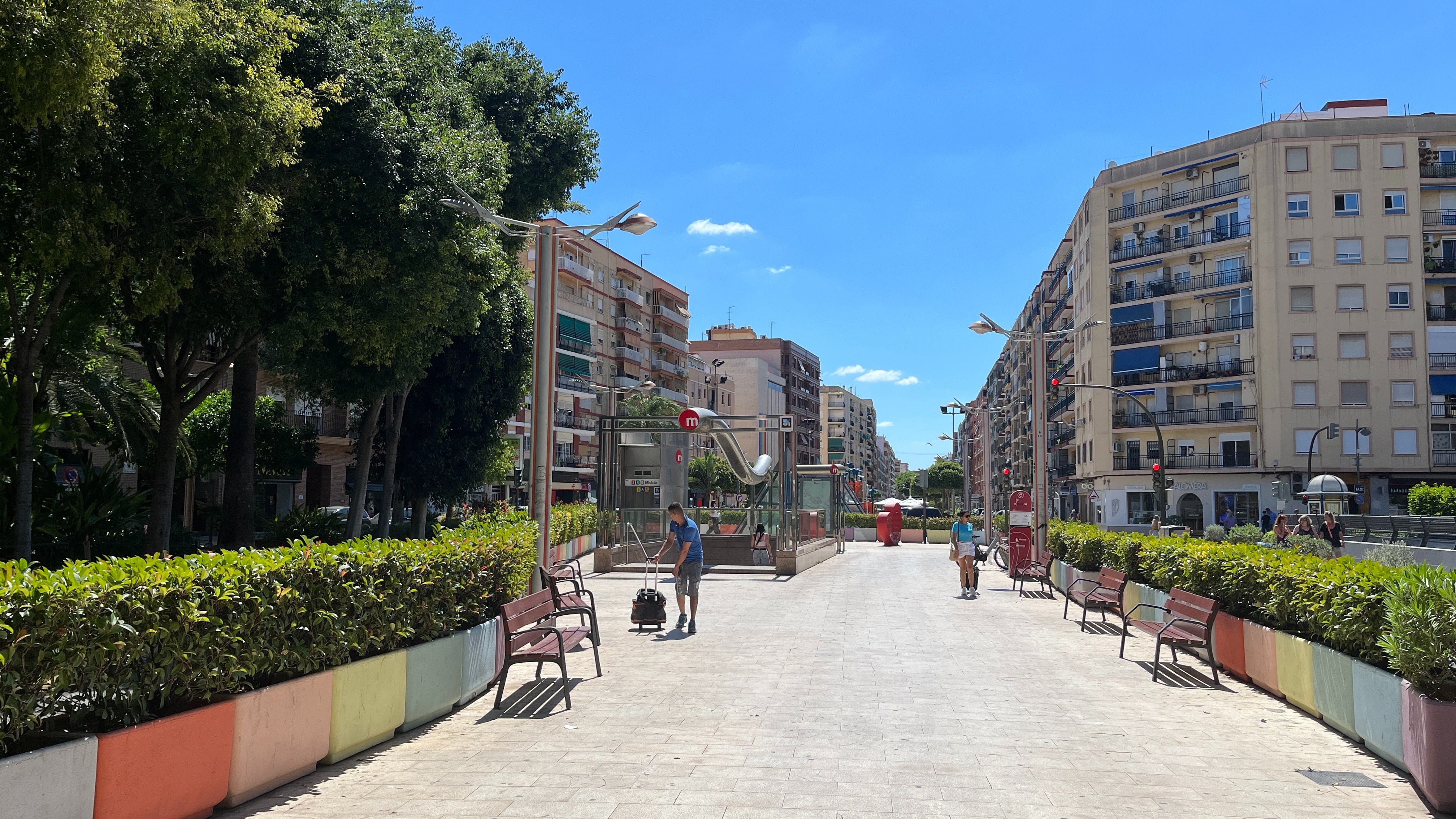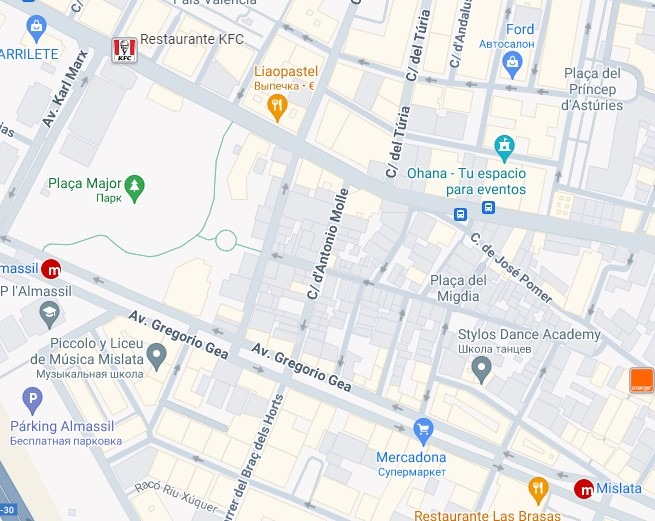 В пригороде есть две станции метро - Mislata и Mislata-Almassil. Причем это классическое метро - подземное. Через станции проходит целых три линии валенсийского метро - 3,5 и 9, две из которых едут в аэропорт. Поэтому интервалы движения здесь поменьше - минут 8-12 в будни. До самого центра - Xativa, что аналогично Площади Испании, ехать 8-9 минут.