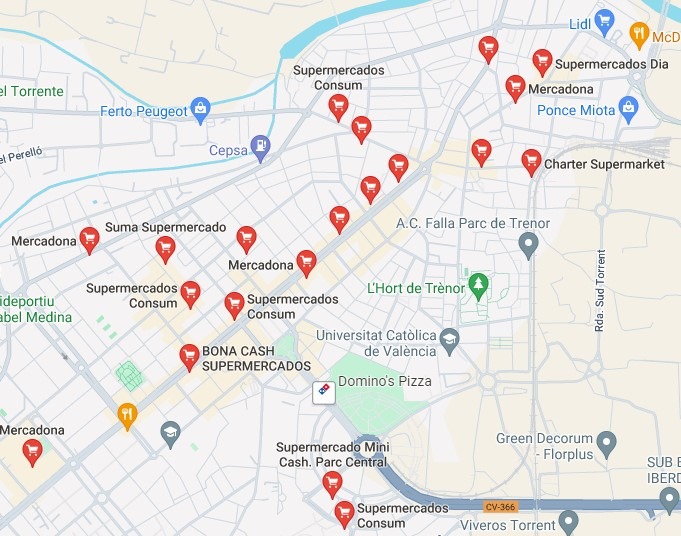 С продуктовыми супермаркетами тоже все в порядке: их очень много. Только на небольшом участке бульвара, где я гулял, я увидел Консум.