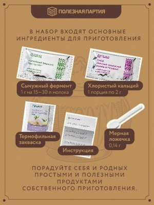 Хлористый кальций . В домашних условиях, чтобы приготовить этот молочнокислый продукт, берут обыкновенную простоквашу . Ее нагревают на водяной бане, а когда под воздействием температуры от сыворотки отделяется белковый сгусток, его выливают в марлевый или полотняный мешочек, а потом укладывают под пресс .