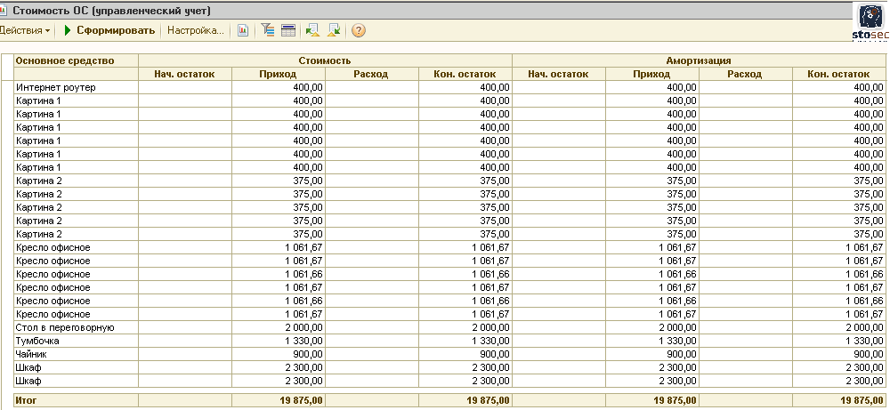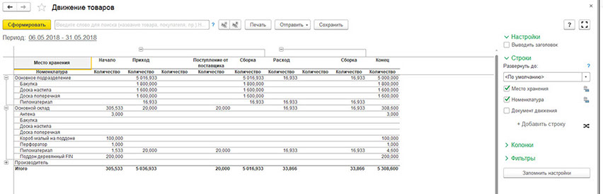 Приход расход в 1 с