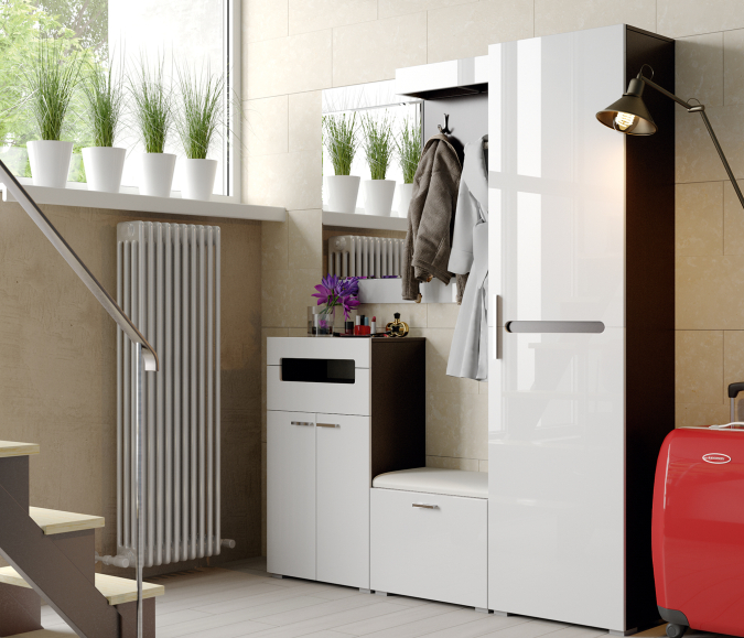 Белые прихожие в последнее время - довольно популярная мебель . Они имеют широкий ассортимент моделей, и классика здесь - черно-белый глянец . Игра цвета делает такую мебель довольно элегантной .