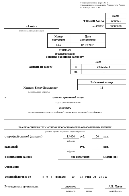 Приказ формы т 1 бланк 137 фото