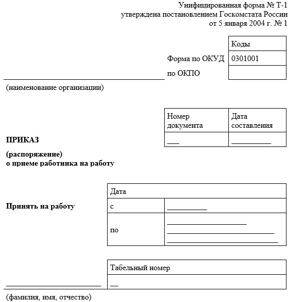 Приказ формы т 1 бланк