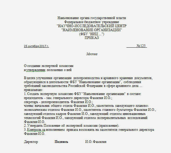 Приказ комиссия пуф 127 фото