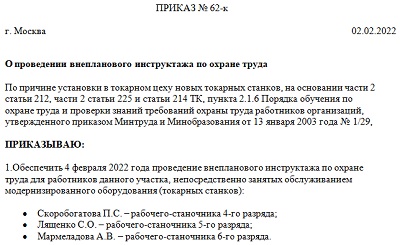 Приказ на целевой инструктаж 113 фото