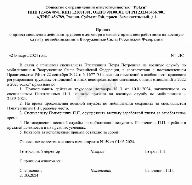 Приказ на работников для выполнения работ