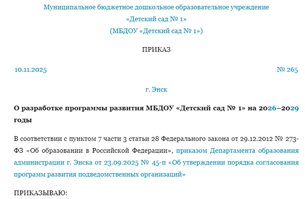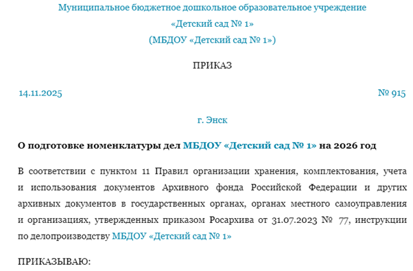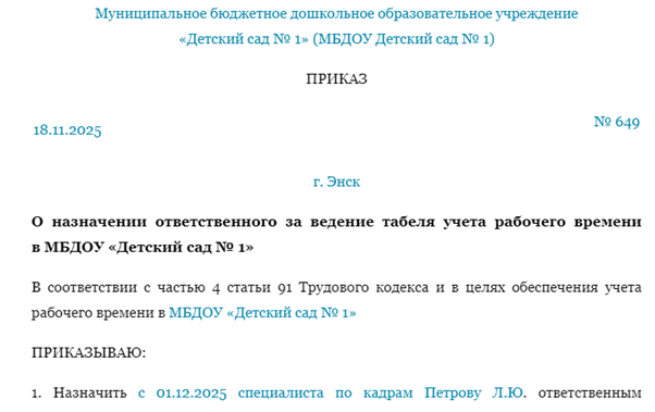 Приказ ноября 1999 г