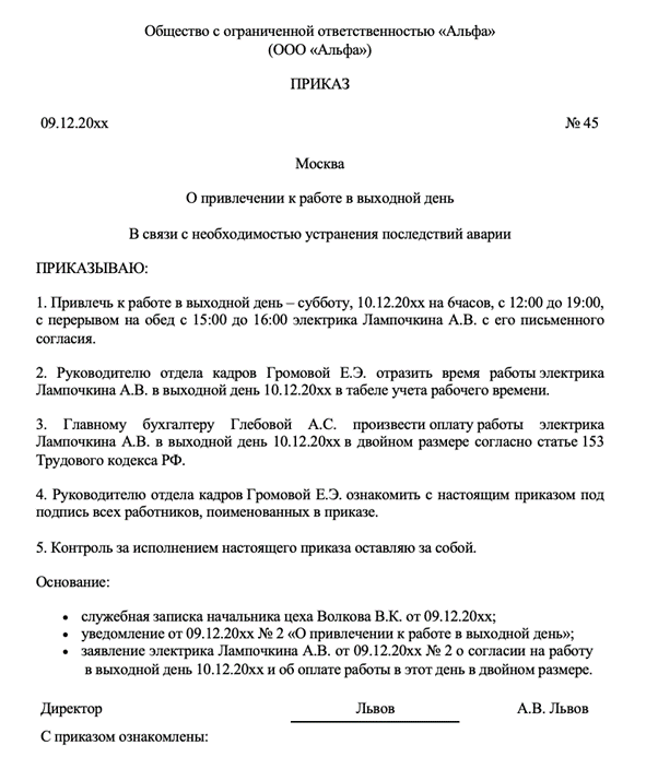 Приказ о двойной оплате 115 фото
