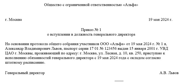Приказ о назначении директор дата