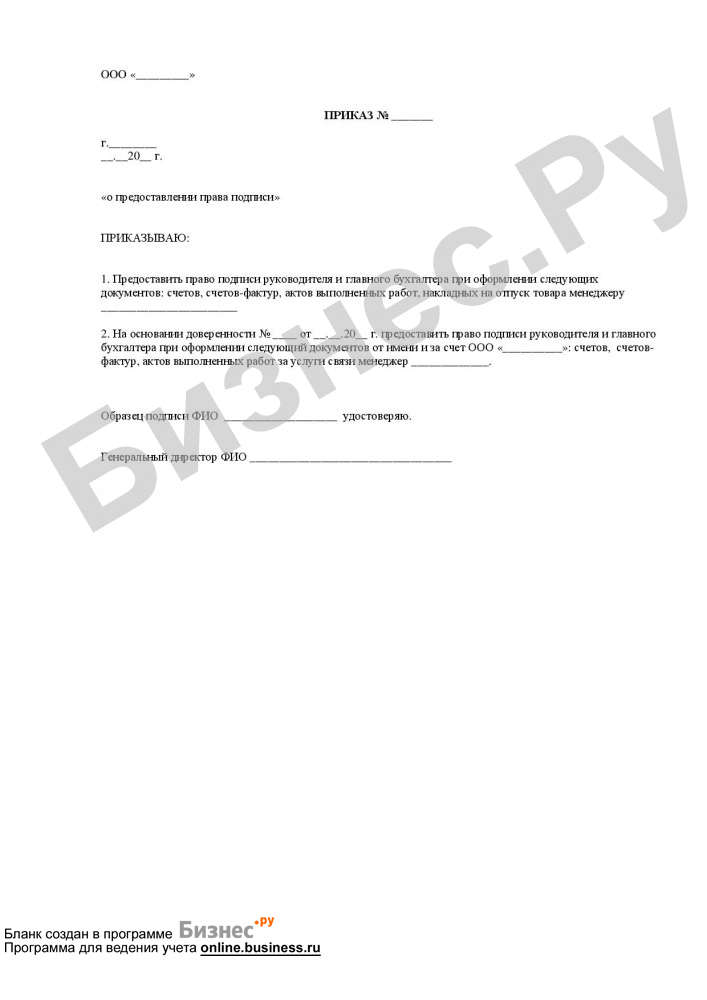 Приказ о передаче подписи