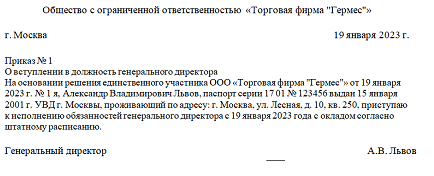 Приказ о принятии директора