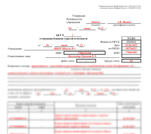 Приказ о списании аттестатов
