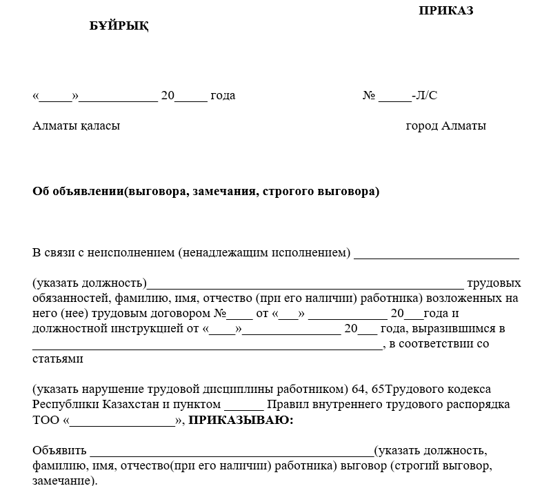 Приказ о строгом выговоре