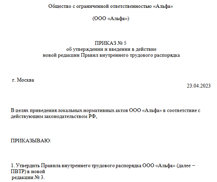 Приказ о внутреннем взаимодействии