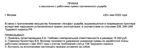 Приказ о возмещение ущерба 142 фотографий