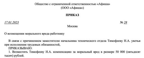 Приказ о возмещение ущерба