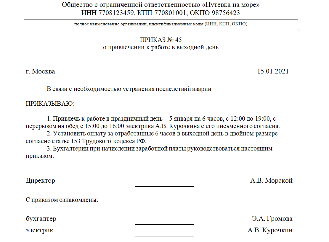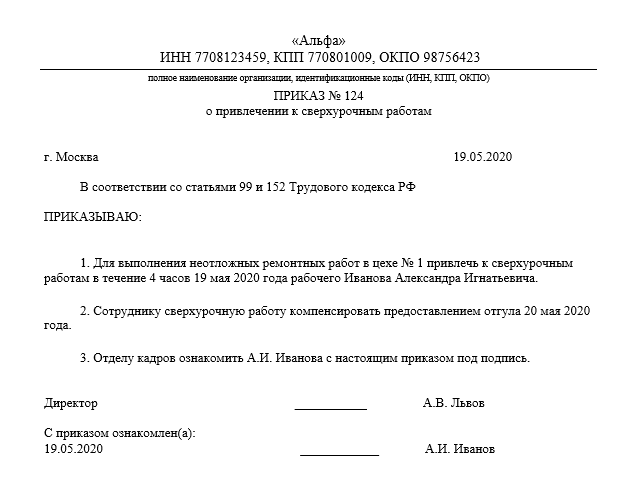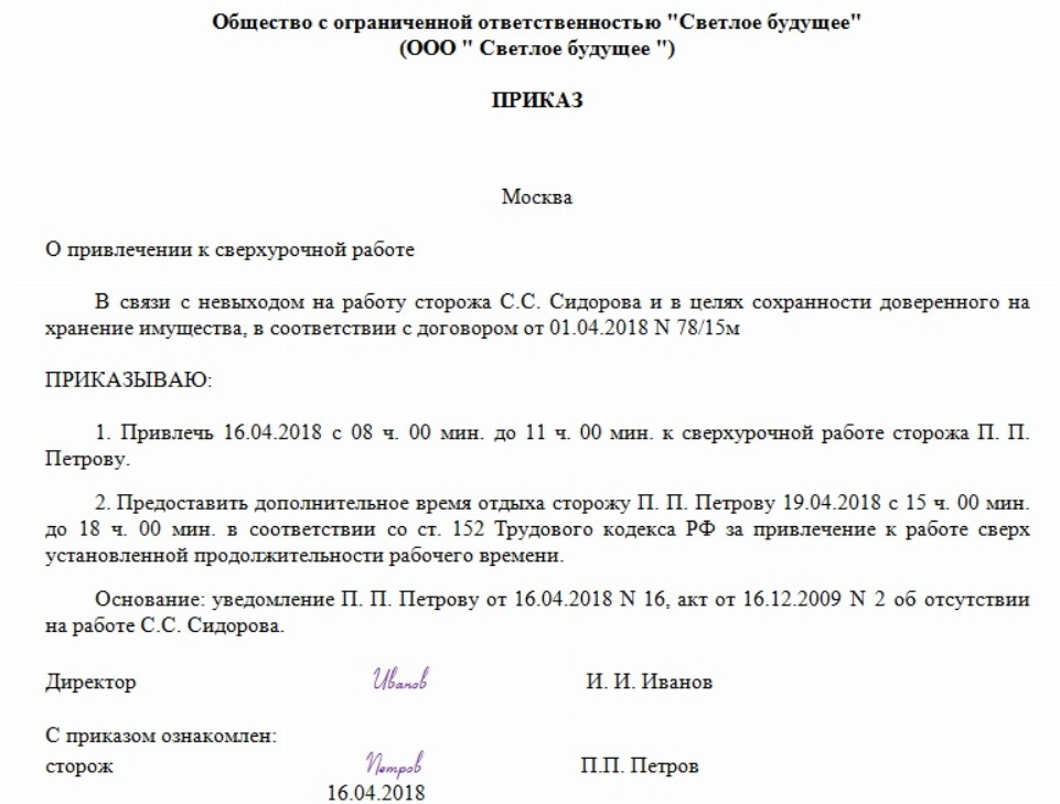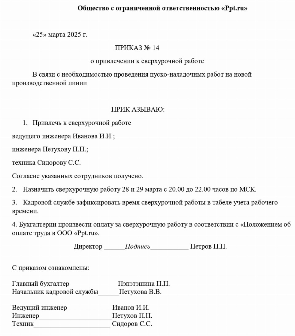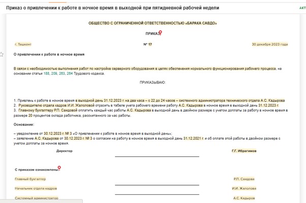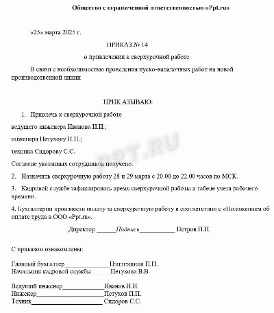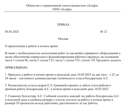 Приказ оплата ночных