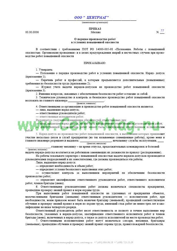Приказ ответственного по обращению с отходами