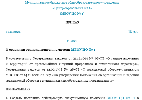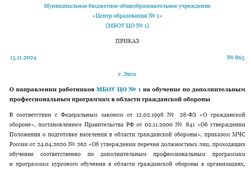 Приказ по категории го