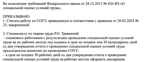 Приказ по соут 2026
