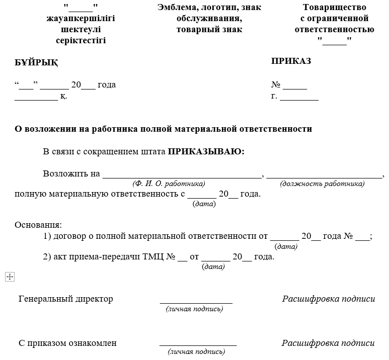 Приказ получение тмц