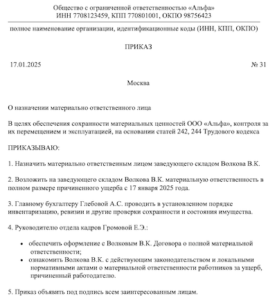 Приказ получение тмц 139 фото