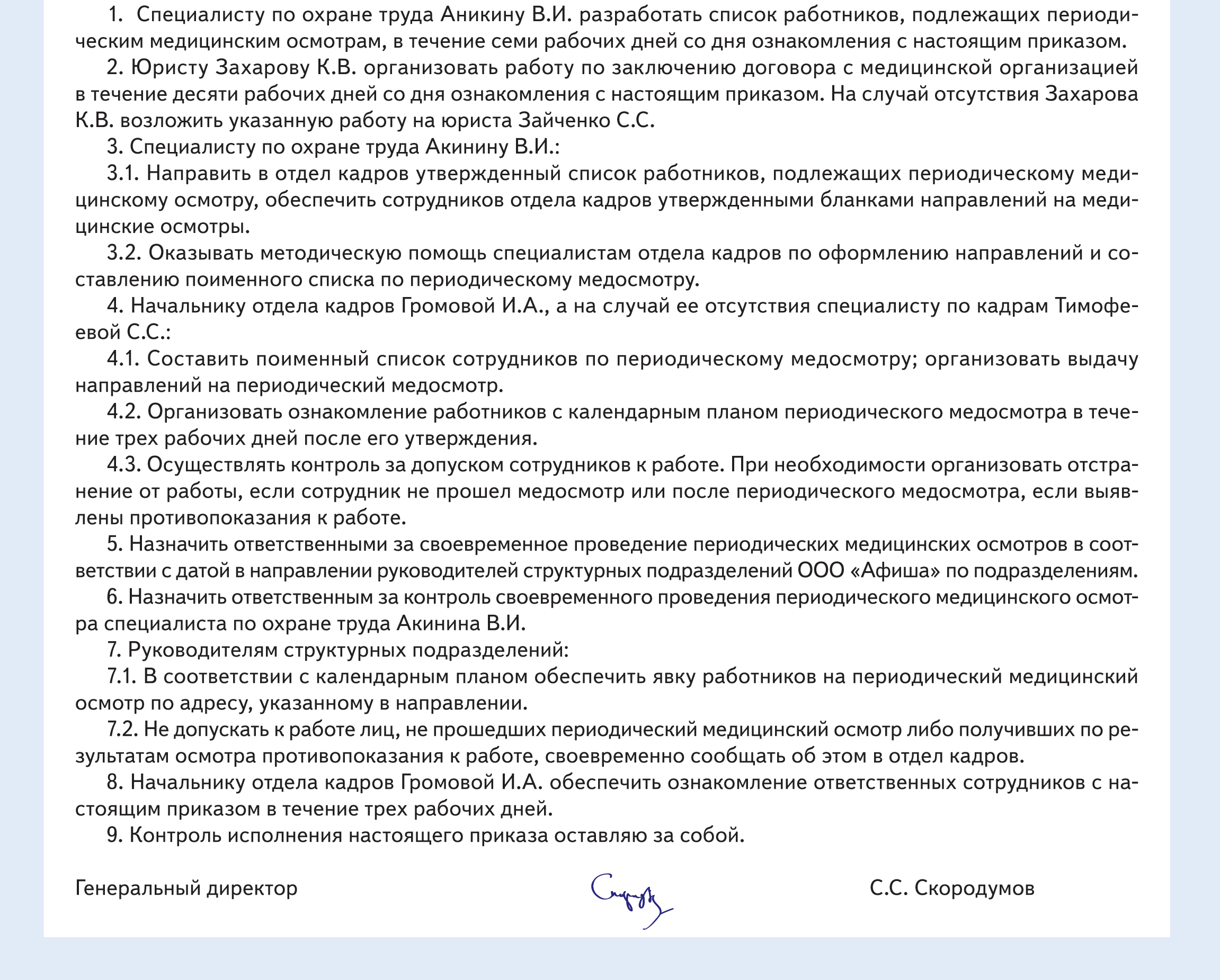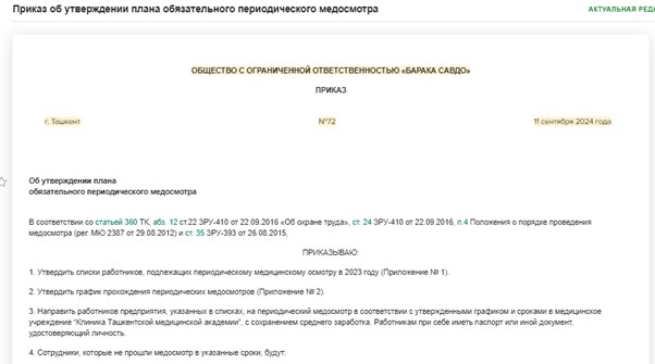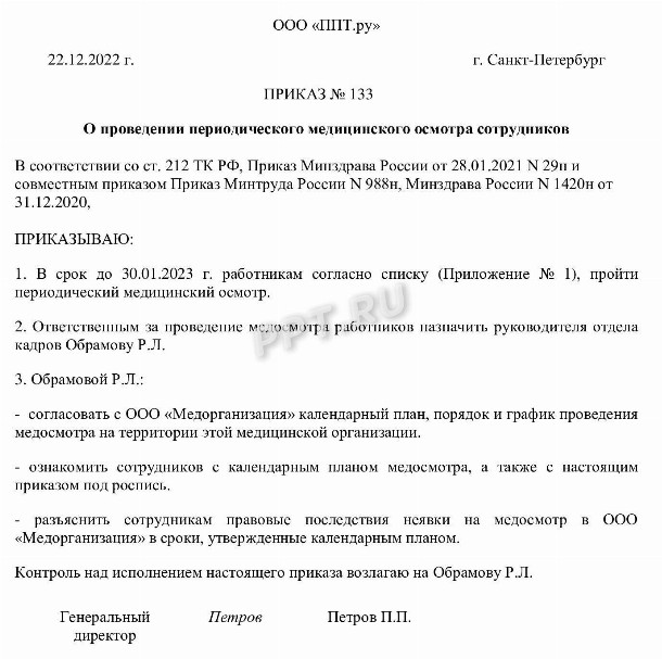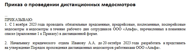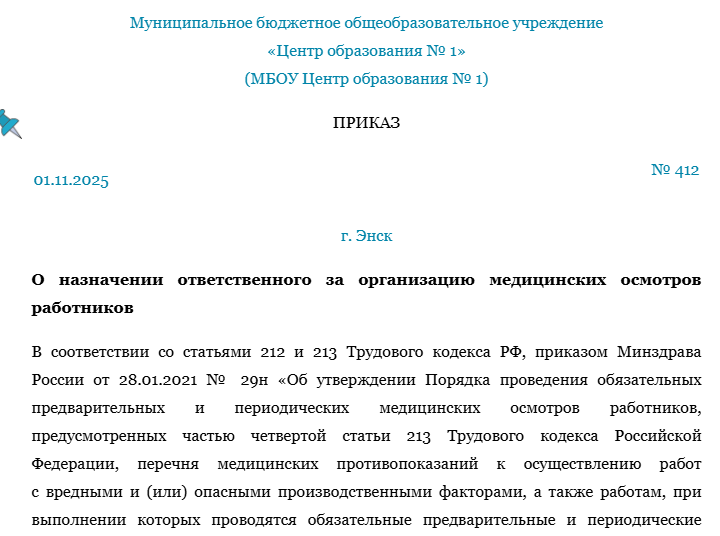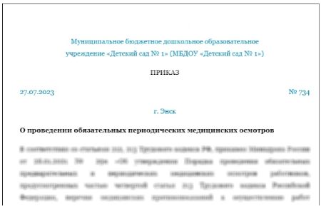 Приказ после медосмотра