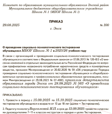 Приказ спт в школе
