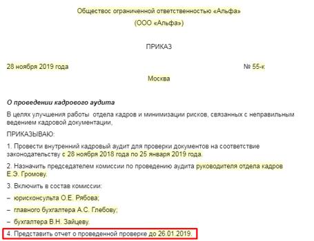 Приказ сверке документов