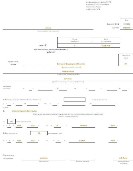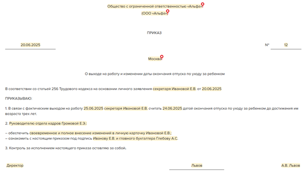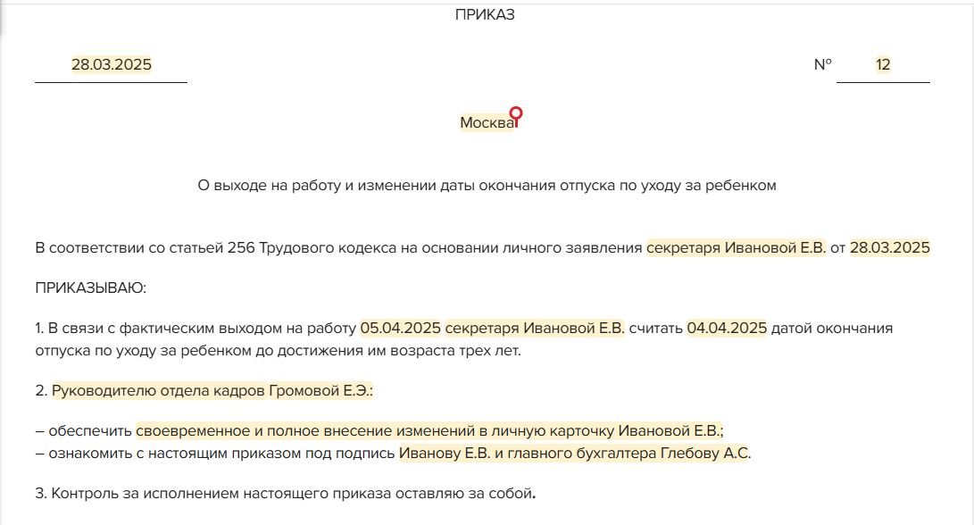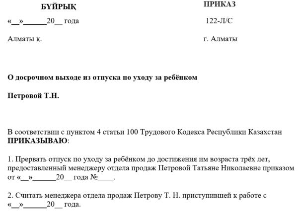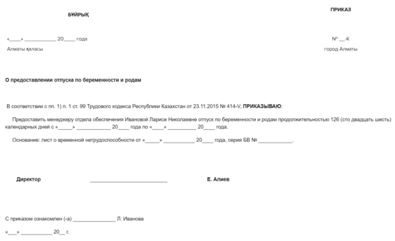 Приказ уходе в декретный