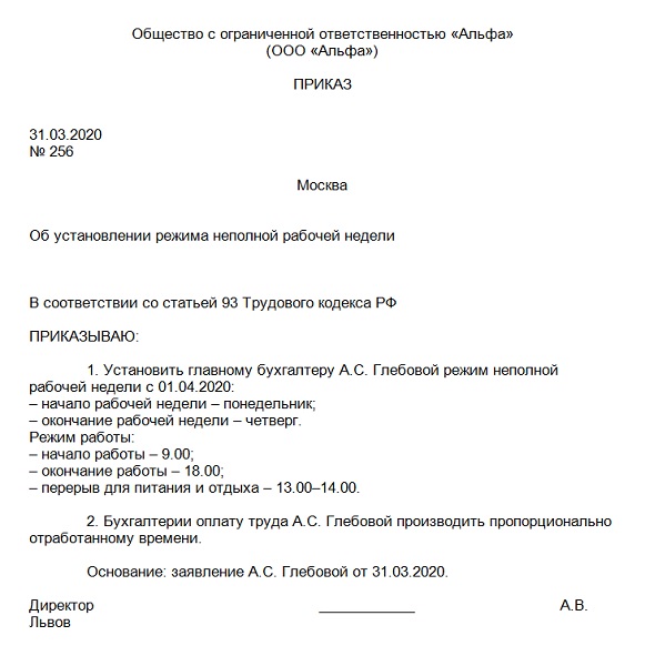 Приказ увеличении рабочего времени