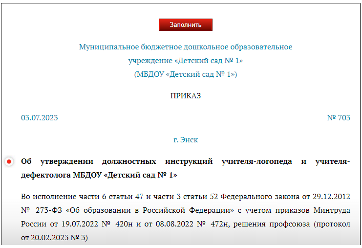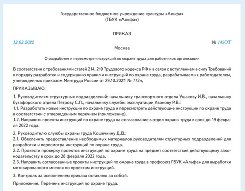 Приказал инструкция