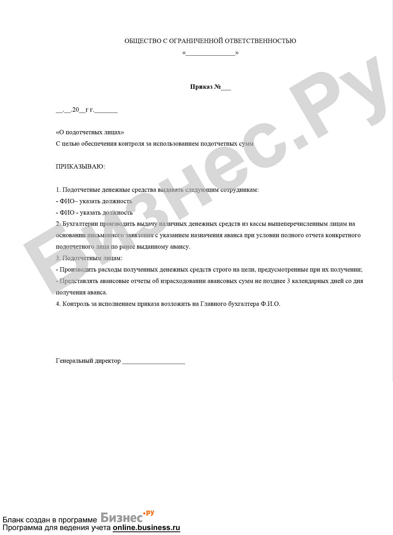 Приказы по авансовым отчетам