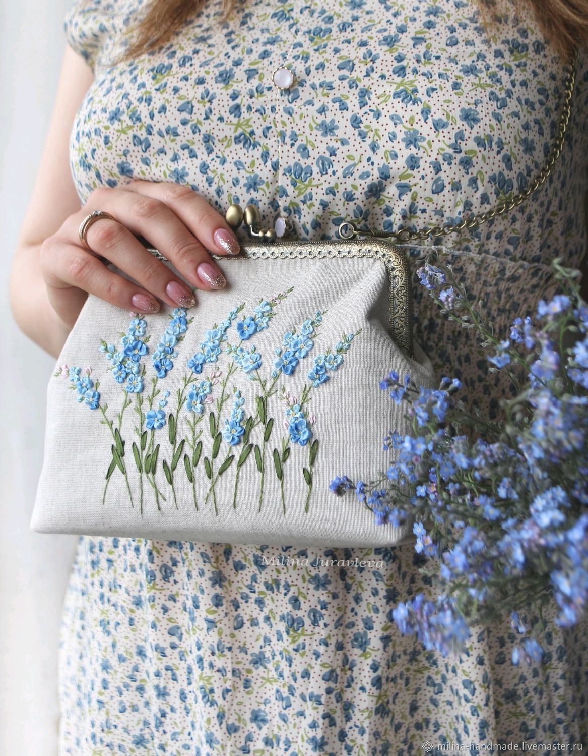 Прикрепленной к ее сумке незабудки 118 фото