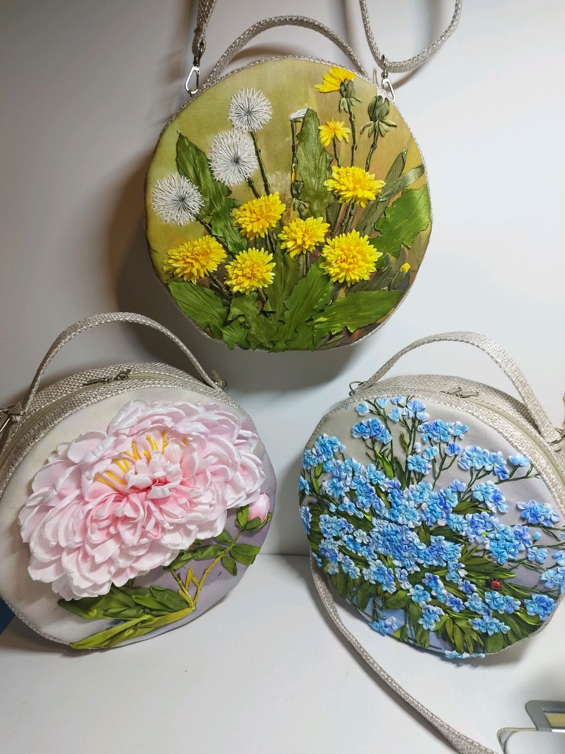 Прикрепленной к ее сумке незабудки