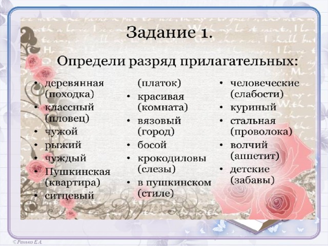 Прилагательные ласковые на буквы