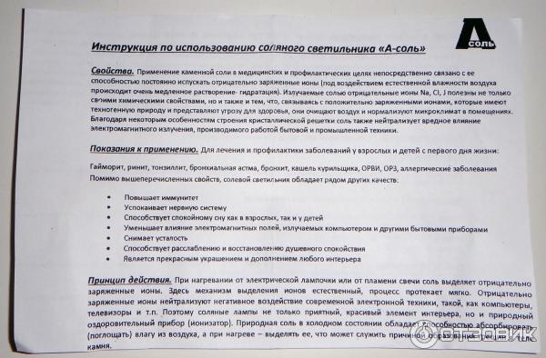 Применение соляных ламп
