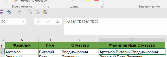 Пример формулы сцепить