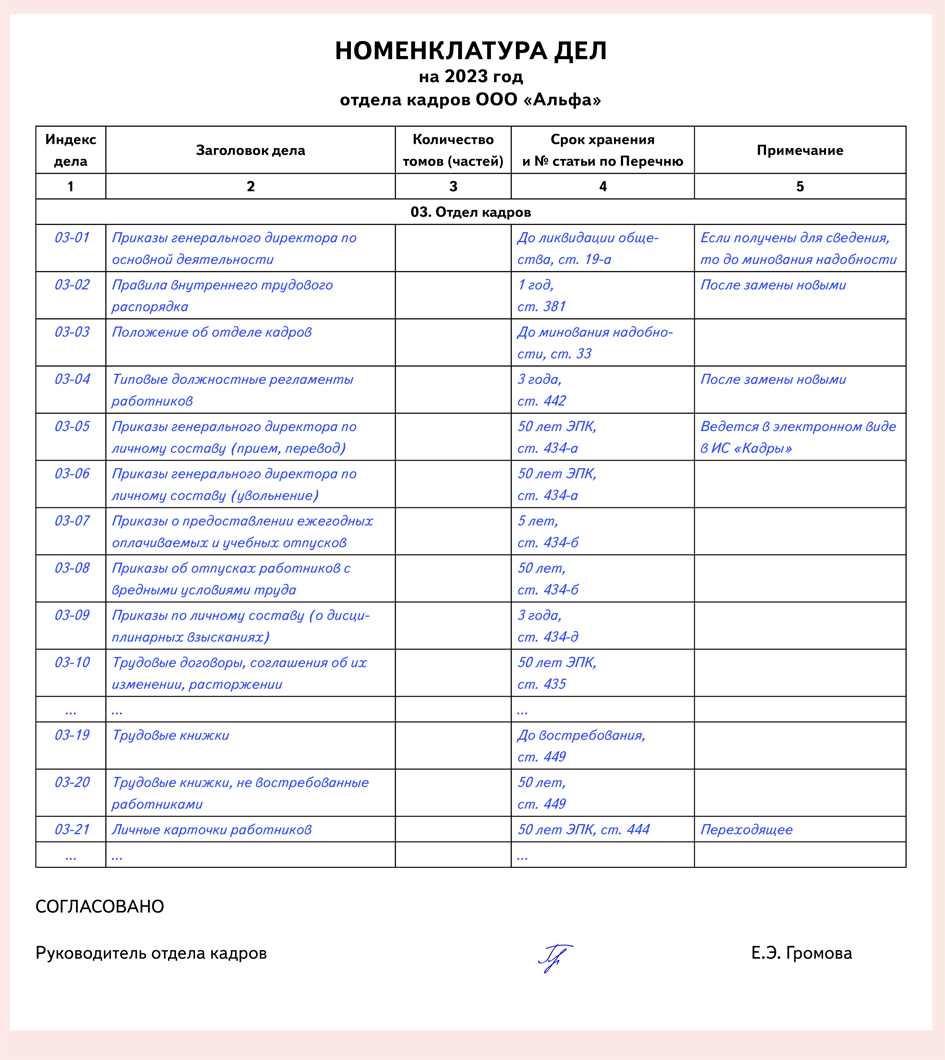 Пример номенклатуры дел 2026 91 фото