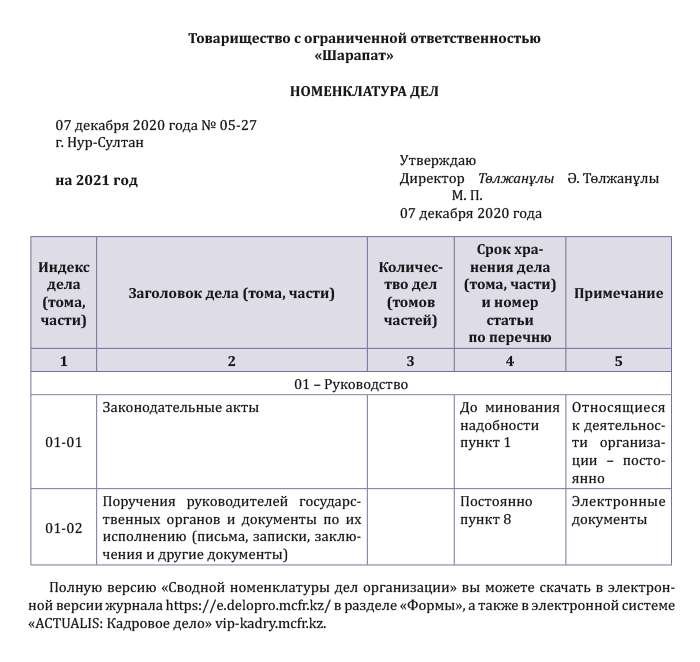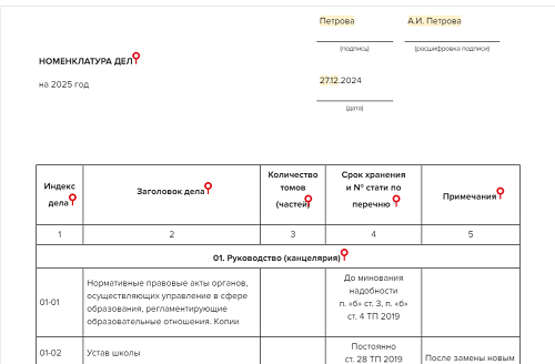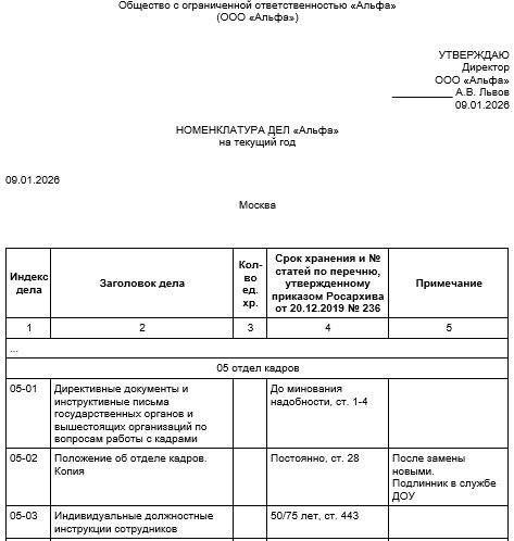 Пример номенклатуры дел 2026