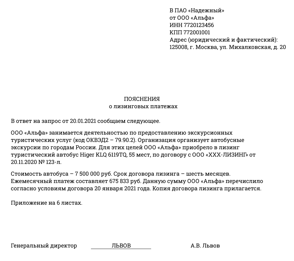 Пример письма в банк