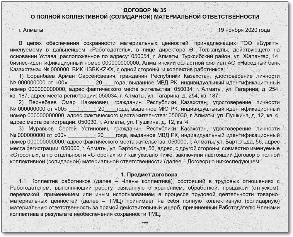 Пример полной материальной ответственности