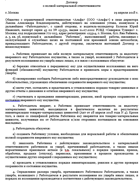 Пример полной материальной ответственности 86 фотографий
