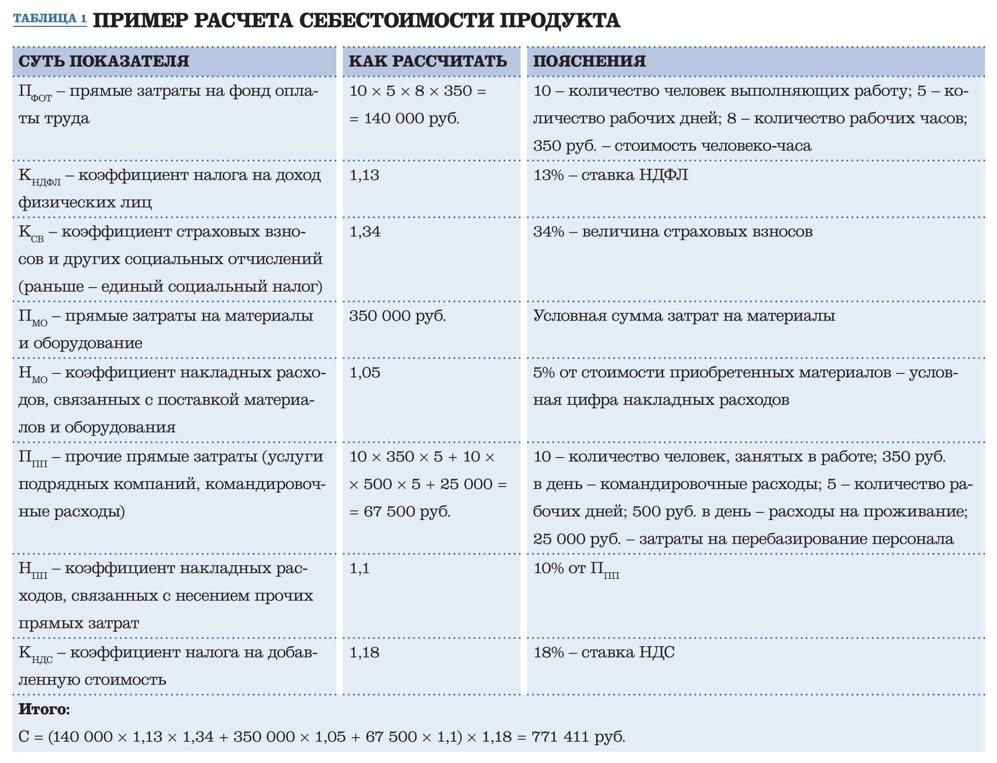 Пример расчета продукта