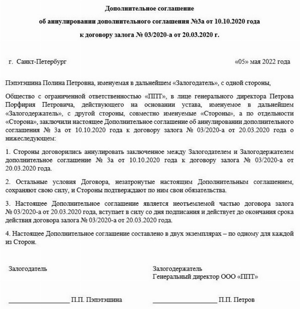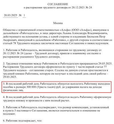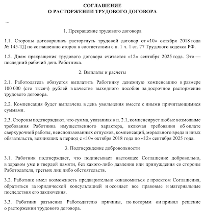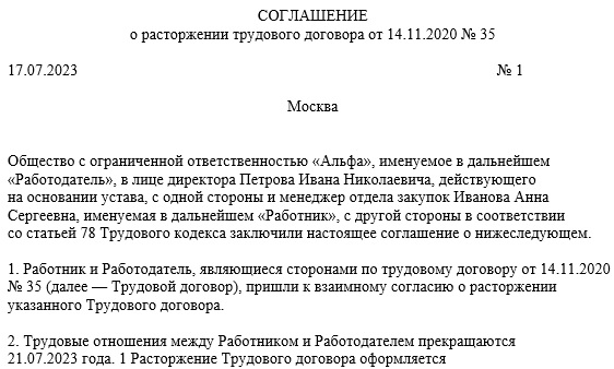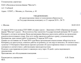 Пример расторжения контракта