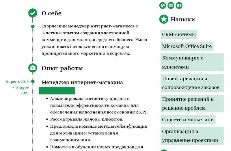 Пример резюме продавец консультант