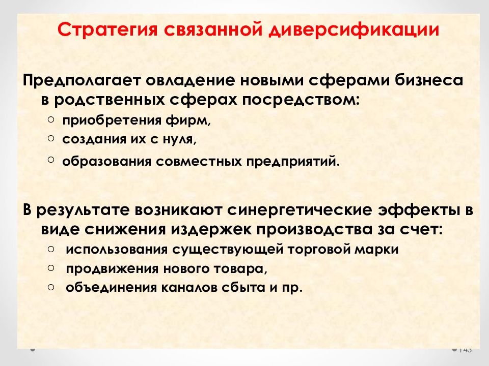 Пример стратегии диверсификации