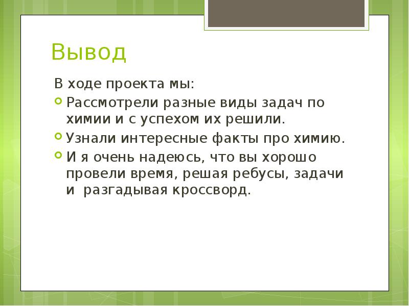 Пример вывода по химии